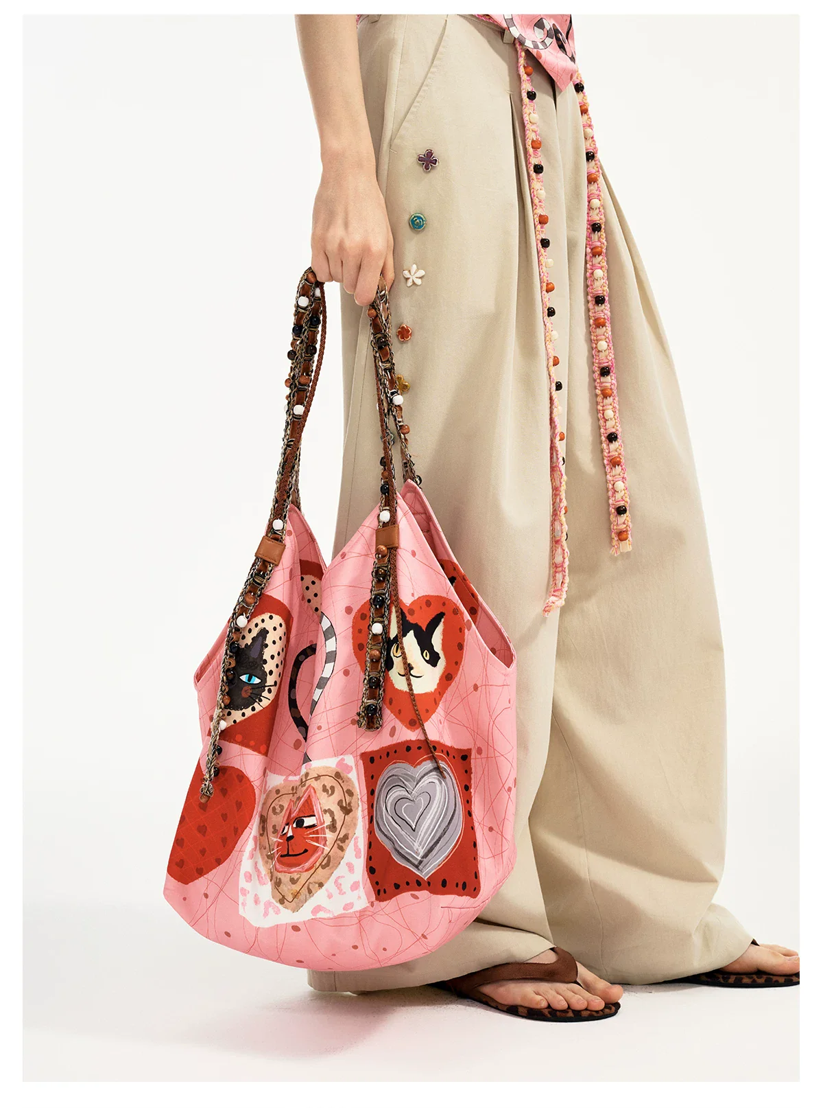 -70%Cat Heart Print Large Capacity Shoulder Bagā