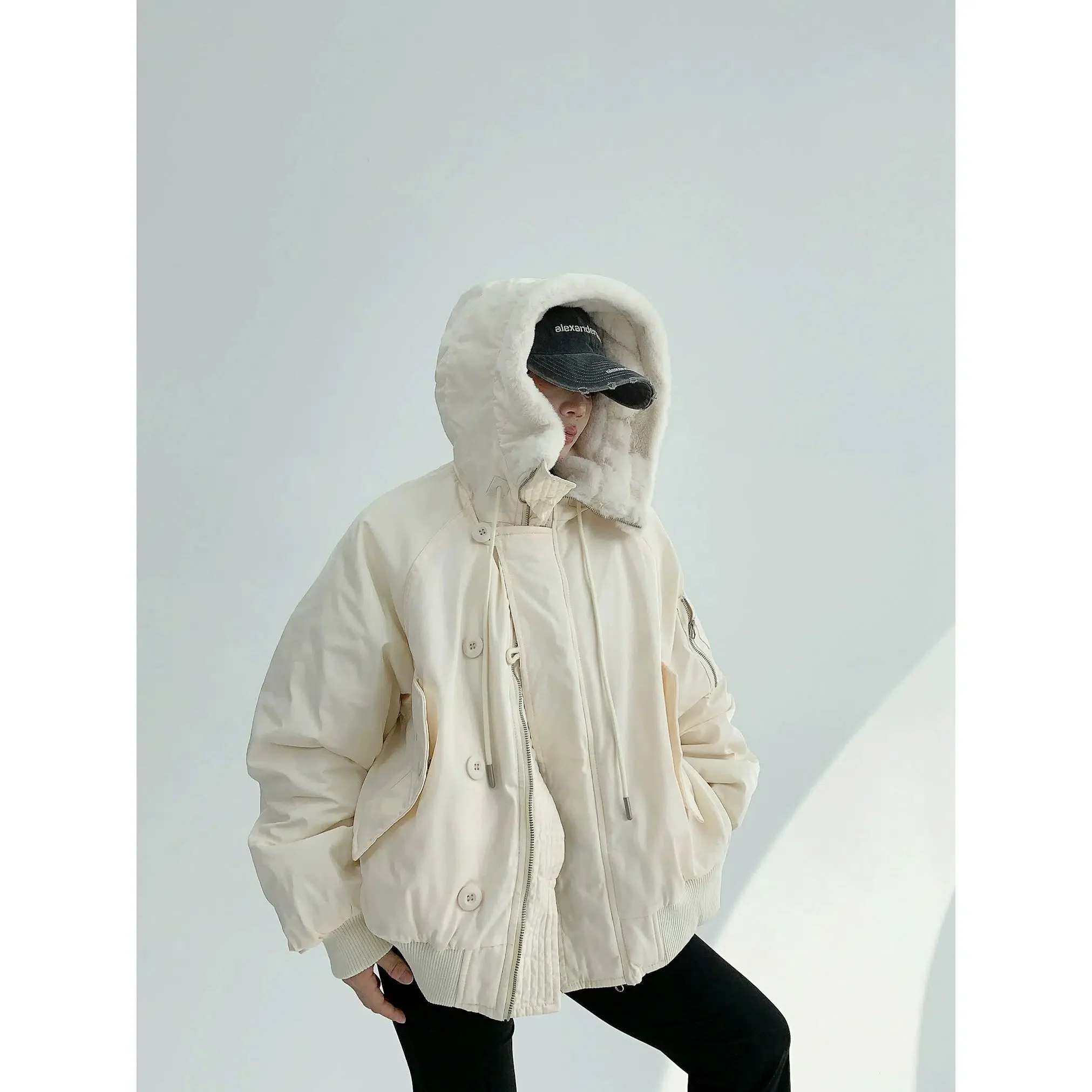 -70%Faux Fur Trim Winter Hooded Jacketā
